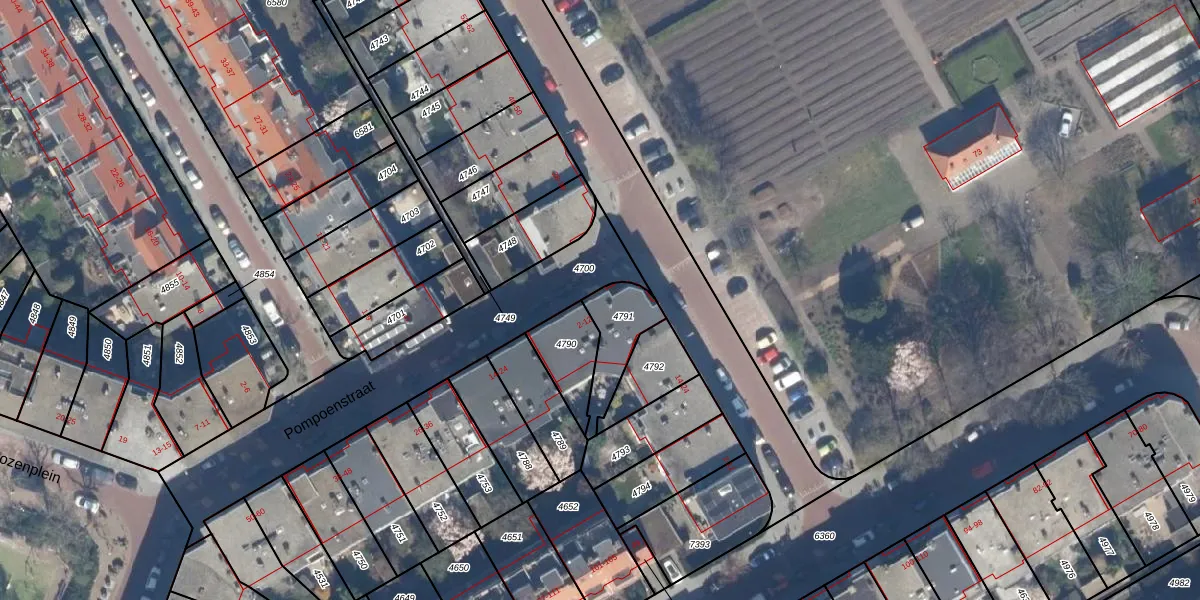 Pompoenstraat 4 is gelegen op kadastraal perceel LDN03I4791. Deze kadastrale aanduiding is uniek en wordt gebruikt door het Kadaster om eigendomsrechten en andere zakelijke rechten vast te leggen. Het perceel maakt onderdeel uit van de kadastrale gemeente Loosduinen.
