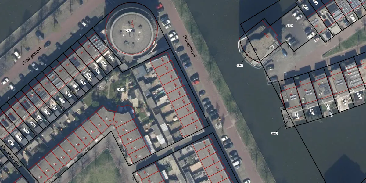 Het perceel waarop Praagsingel 141 staat heeft een oppervlakte van 3652 m². Dit is een zeer groot perceel. De perceeloppervlakte wordt geregistreerd door het Kadaster. Gedetailleerde informatie over de maten van dit perceel kunt u vinden in het rapport Kadastrale kaart met maatvoering van Praagsingel 141.