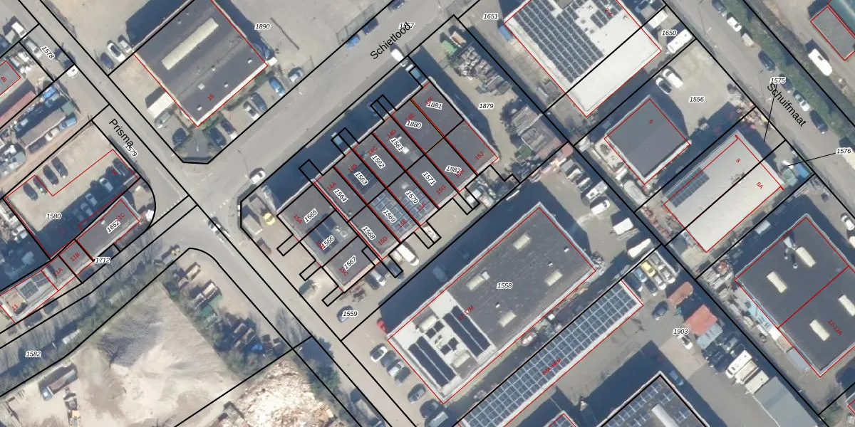 Het perceel waarop Prisma 15-F staat heeft een oppervlakte van 82 m². Dit is een klein perceel. De perceeloppervlakte wordt geregistreerd door het Kadaster. Gedetailleerde informatie over de maten van dit perceel kunt u vinden in het rapport Kadastrale kaart met maatvoering van Prisma 15-F.