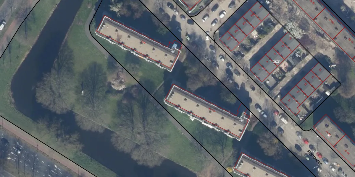 Het perceel waarop Randveen 107 staat heeft een oppervlakte van 9564 m². Dit is een zeer groot perceel. De perceeloppervlakte wordt geregistreerd door het Kadaster. Gedetailleerde informatie over de maten van dit perceel kunt u vinden in het rapport Kadastrale kaart met maatvoering van Randveen 107.