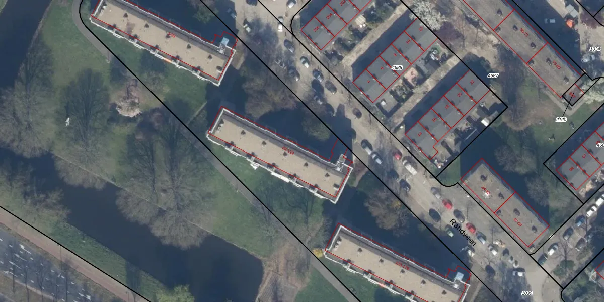 Het perceel waarop Randveen 67 staat heeft een oppervlakte van 9564 m². Dit is een zeer groot perceel. De perceeloppervlakte wordt geregistreerd door het Kadaster. Gedetailleerde informatie over de maten van dit perceel kunt u vinden in het rapport Kadastrale kaart met maatvoering van Randveen 67.