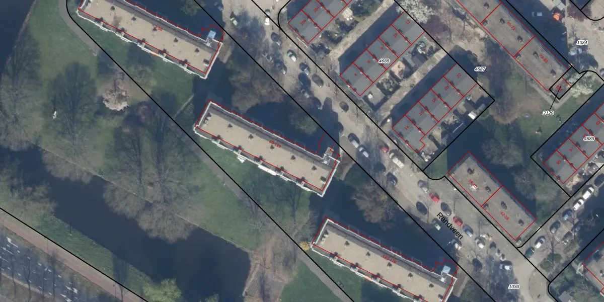 Het perceel waarop Randveen 75 staat heeft een oppervlakte van 9564 m². Dit is een zeer groot perceel. De perceeloppervlakte wordt geregistreerd door het Kadaster. Gedetailleerde informatie over de maten van dit perceel kunt u vinden in het rapport Kadastrale kaart met maatvoering van Randveen 75.