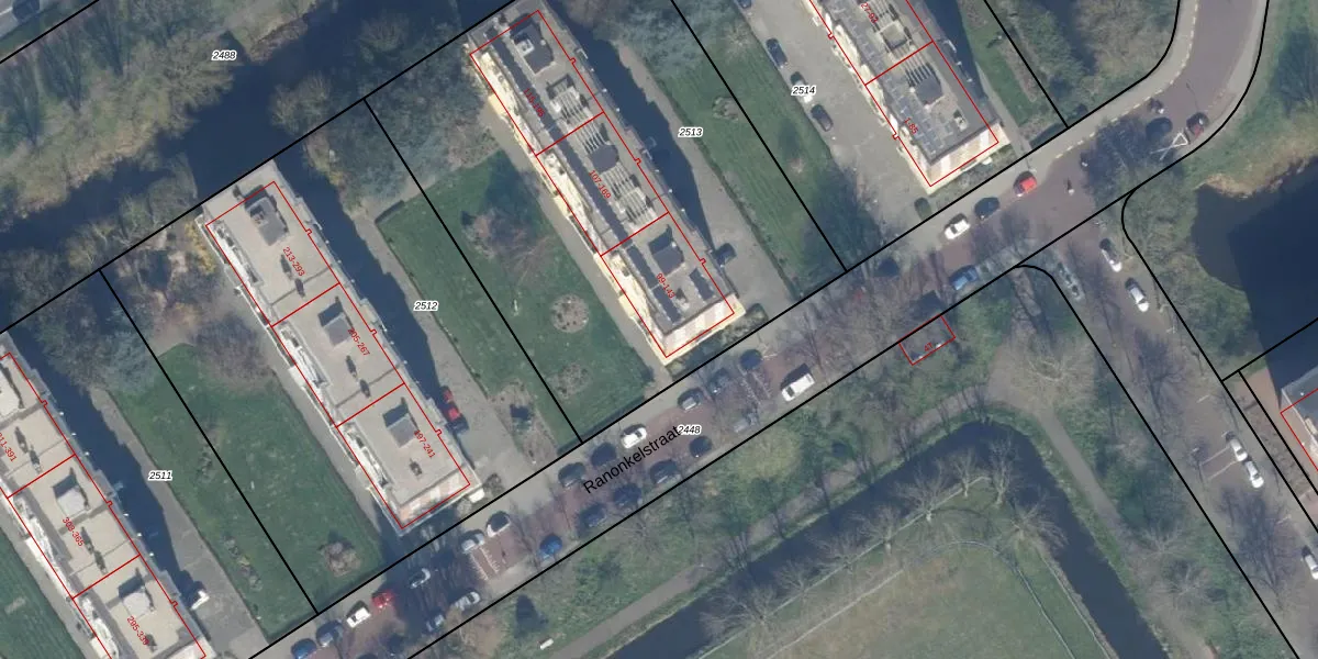 Het perceel waarop Ranonkelstraat 129 staat heeft een oppervlakte van 2963 m². Dit is een zeer groot perceel. De perceeloppervlakte wordt geregistreerd door het Kadaster. Gedetailleerde informatie over de maten van dit perceel kunt u vinden in het rapport Kadastrale kaart met maatvoering van Ranonkelstraat 129.