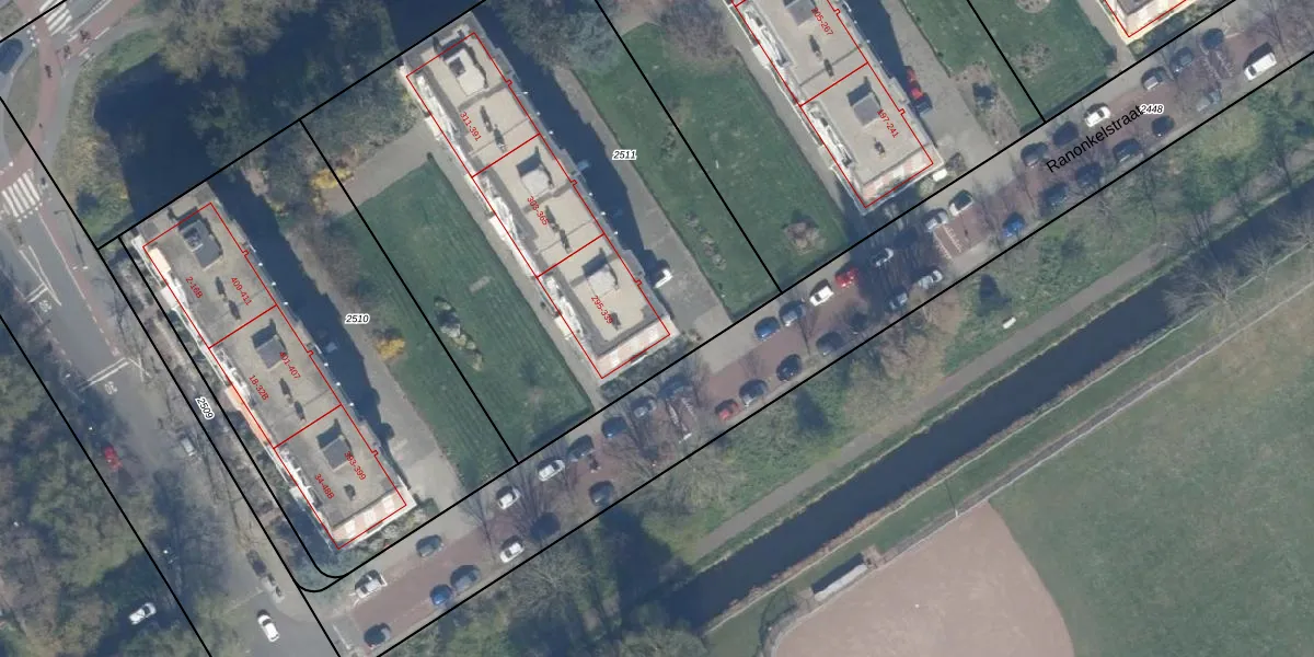 Het perceel waarop Ranonkelstraat 295 staat heeft een oppervlakte van 2963 m². Dit is een zeer groot perceel. De perceeloppervlakte wordt geregistreerd door het Kadaster. Gedetailleerde informatie over de maten van dit perceel kunt u vinden in het rapport Kadastrale kaart met maatvoering van Ranonkelstraat 295.