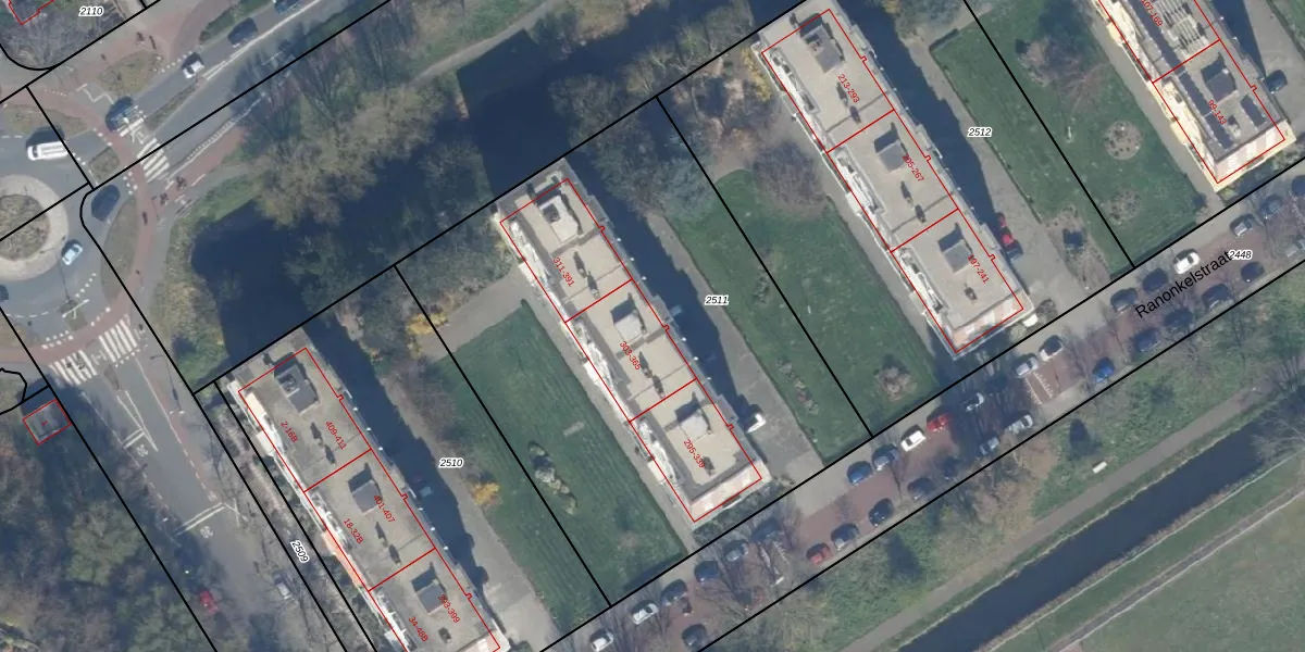 Het perceel waarop Ranonkelstraat 307 staat heeft een oppervlakte van 2963 m². Dit is een zeer groot perceel. De perceeloppervlakte wordt geregistreerd door het Kadaster. Gedetailleerde informatie over de maten van dit perceel kunt u vinden in het rapport Kadastrale kaart met maatvoering van Ranonkelstraat 307.