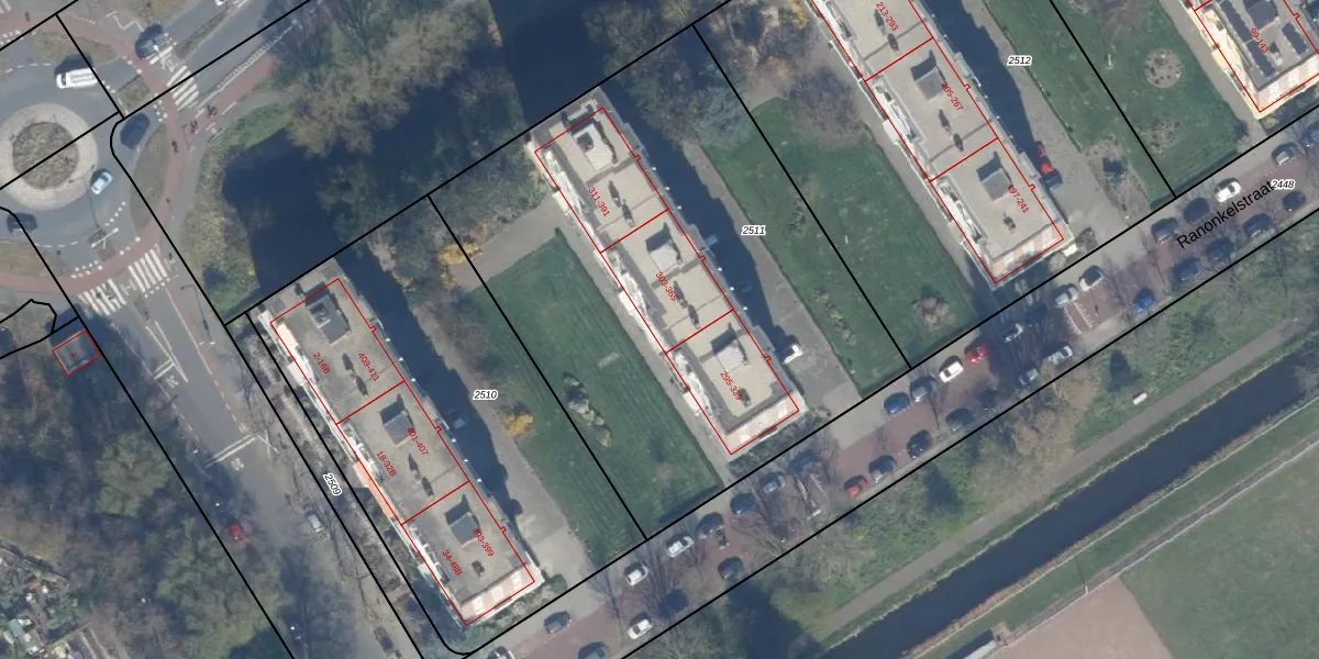 Het adres ligt op het perceel GVH36-AV-2511, dat zich in de kadastrale gemeente 's-Gravenhage bevindt. De oppervlakte van het perceel is 2963 m². Dat is groter dan gemiddeld in 's-Gravenhage, waar de gemiddelde perceeloppervlakte op 362,09 m² ligt. Het grootste perceel in de kadastrale gemeente is 8,1 ha. Het kleinste perceel heeft een oppervlakte van 2 m². Op het perceel liggen in totaal 46 adressen. In de Basisregistratie Kadaster (BRK) werden de grenzen van het perceel geregistreerd op 27-05-2003.