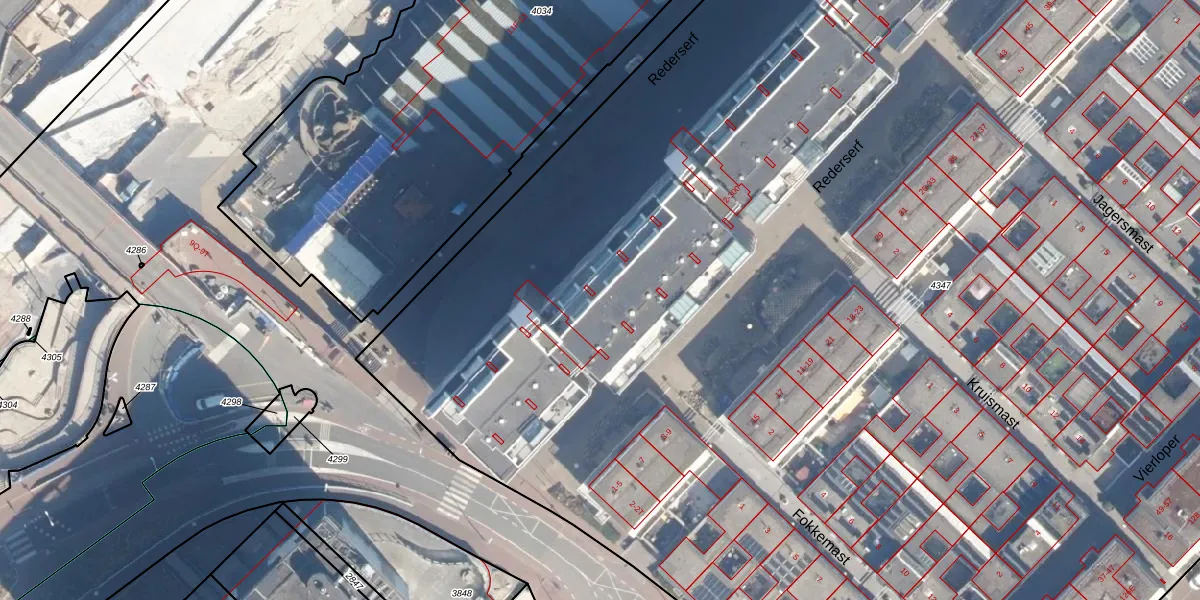 Het perceel waarop Rederserf 46 staat heeft een oppervlakte van 1,7 ha. Dit is een zeer groot perceel. De perceeloppervlakte wordt geregistreerd door het Kadaster. Gedetailleerde informatie over de maten van dit perceel kunt u vinden in het rapport Kadastrale kaart met maatvoering van Rederserf 46.