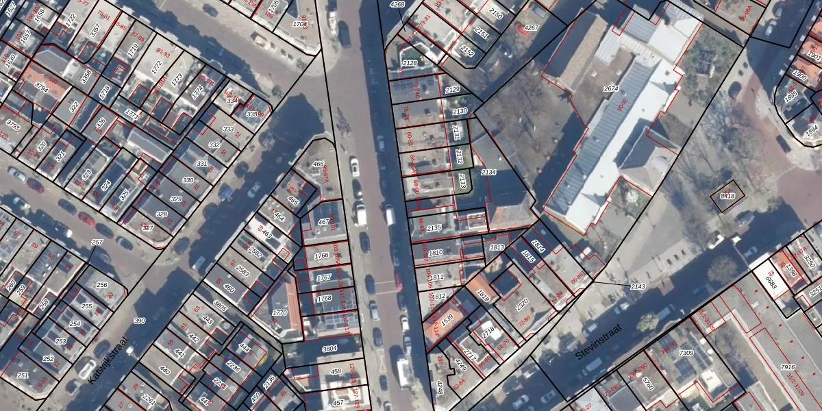 Het adres ligt op het perceel GVH23-AF-2134, dat zich in de kadastrale gemeente 's-Gravenhage bevindt. De oppervlakte van het perceel is 321 m². Dat is groter dan gemiddeld in 's-Gravenhage, waar de gemiddelde perceeloppervlakte op 307,47 m² ligt. Het grootste perceel in de kadastrale gemeente is 4,0 ha. Het kleinste perceel heeft een oppervlakte van 0 m². Op het perceel zijn 2 adressen aanwezig. In de Basisregistratie Kadaster (BRK) werden de grenzen van het perceel geregistreerd op 21-02-2008.