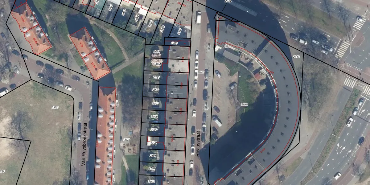Het perceel waarop Reviusstraat 33 staat heeft een oppervlakte van 173 m². Dit is een middelgroot perceel. De perceeloppervlakte wordt geregistreerd door het Kadaster. Gedetailleerde informatie over de maten van dit perceel kunt u vinden in het rapport Kadastrale kaart met maatvoering van Reviusstraat 33.