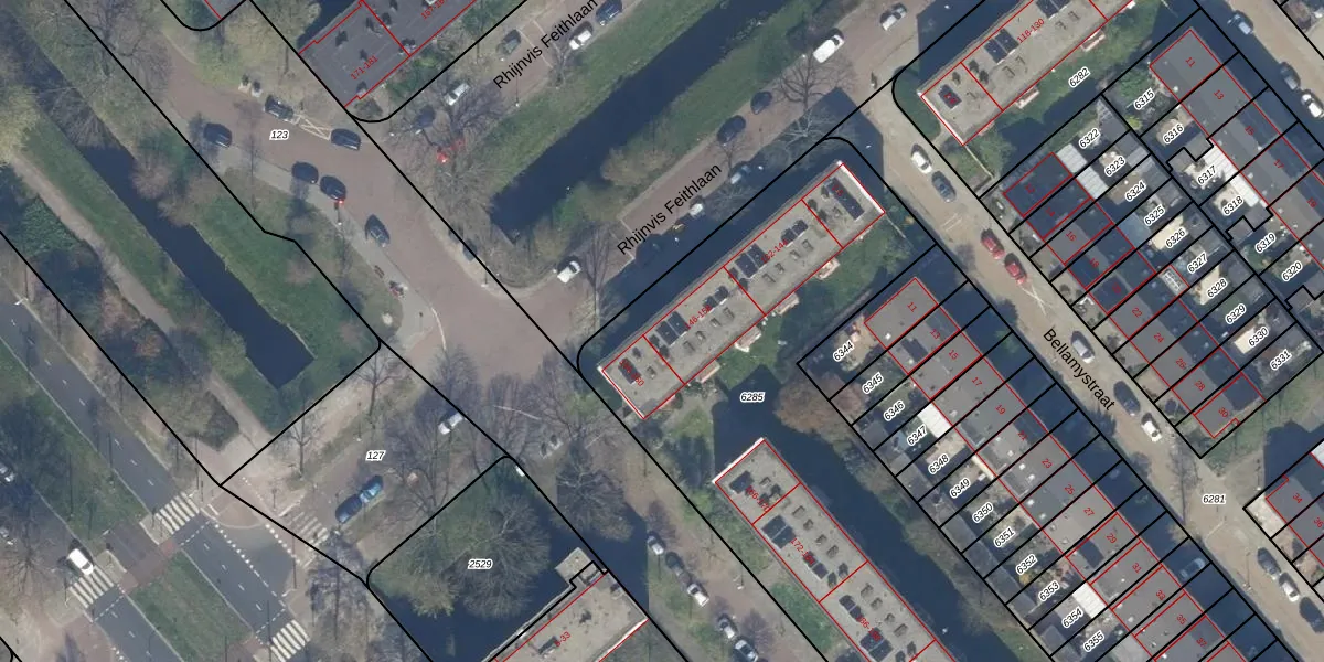 Rhijnvis Feithlaan 156 is gelegen op kadastraal perceel GVH28AL6285. Deze kadastrale aanduiding is uniek en wordt gebruikt door het Kadaster om eigendomsrechten en andere zakelijke rechten vast te leggen. Het perceel maakt onderdeel uit van de kadastrale gemeente 's-Gravenhage.