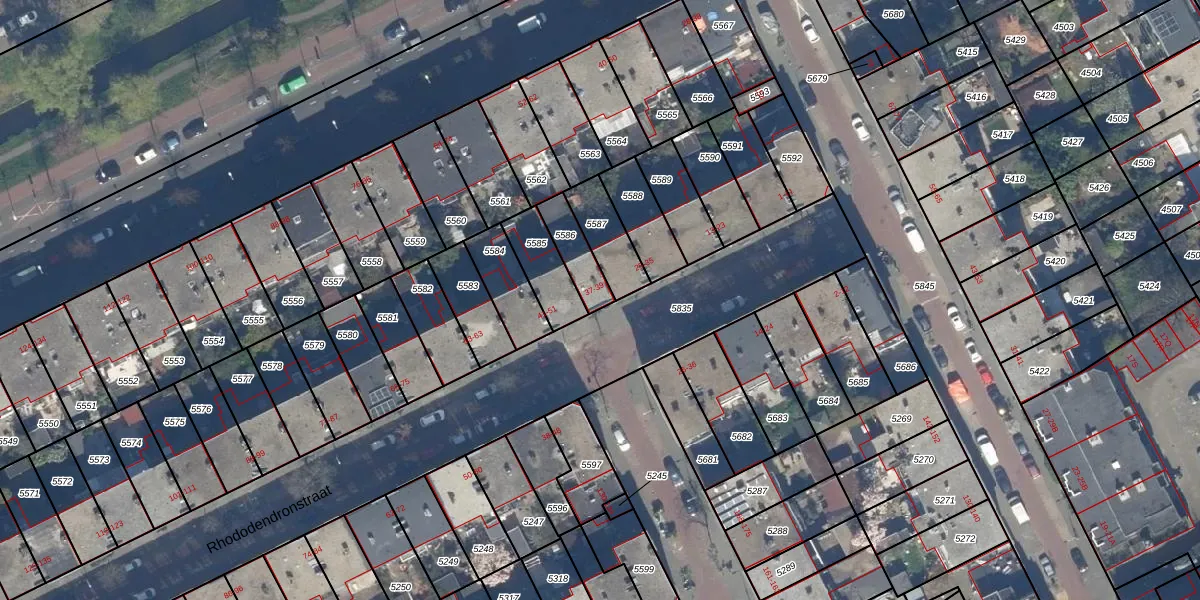 Rhododendronstraat 39 is gelegen op kadastraal perceel GVH29AM5586. Deze kadastrale aanduiding is uniek en wordt gebruikt door het Kadaster om eigendomsrechten en andere zakelijke rechten vast te leggen. Het perceel maakt onderdeel uit van de kadastrale gemeente 's-Gravenhage.
