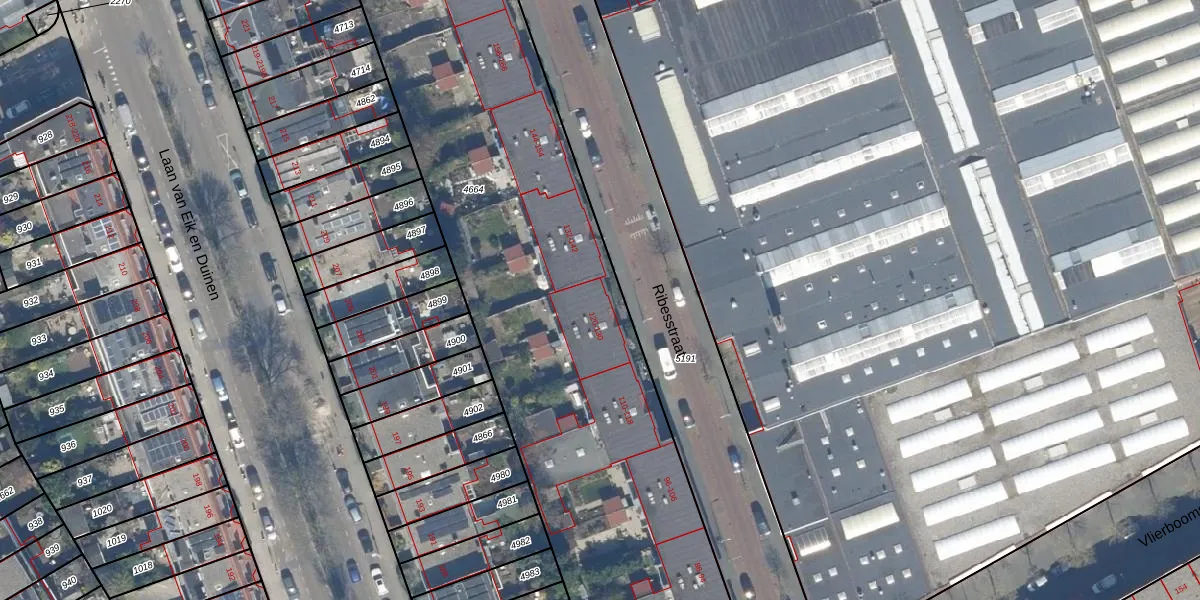 Het perceel waarop Ribesstraat 130 staat heeft een oppervlakte van 4610 m². Dit is een zeer groot perceel. De perceeloppervlakte wordt geregistreerd door het Kadaster. Gedetailleerde informatie over de maten van dit perceel kunt u vinden in het rapport Kadastrale kaart met maatvoering van Ribesstraat 130.