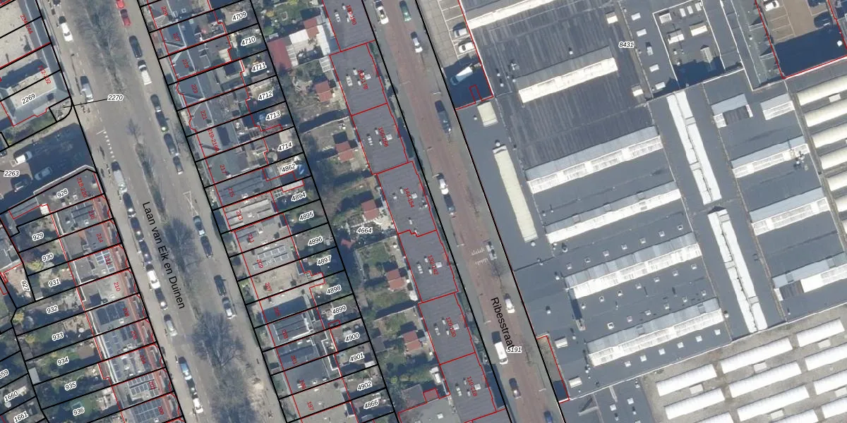Het perceel waarop Ribesstraat 144 staat heeft een oppervlakte van 4610 m². Dit is een zeer groot perceel. De perceeloppervlakte wordt geregistreerd door het Kadaster. Gedetailleerde informatie over de maten van dit perceel kunt u vinden in het rapport Kadastrale kaart met maatvoering van Ribesstraat 144.