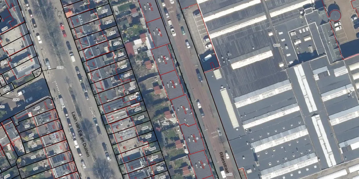 Het perceel waarop Ribesstraat 158 staat heeft een oppervlakte van 4610 m². Dit is een zeer groot perceel. De perceeloppervlakte wordt geregistreerd door het Kadaster. Gedetailleerde informatie over de maten van dit perceel kunt u vinden in het rapport Kadastrale kaart met maatvoering van Ribesstraat 158.