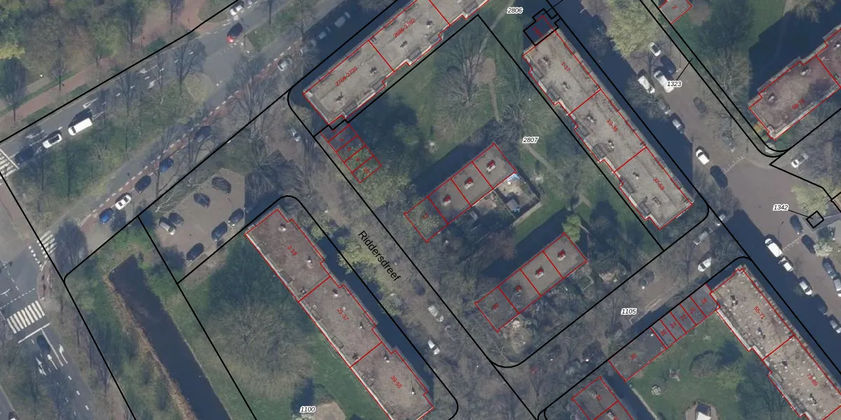 Riddersdreef 12 is gelegen op kadastraal perceel GVH37AW2807. Deze kadastrale aanduiding is uniek en wordt gebruikt door het Kadaster om eigendomsrechten en andere zakelijke rechten vast te leggen. Het perceel maakt onderdeel uit van de kadastrale gemeente 's-Gravenhage.