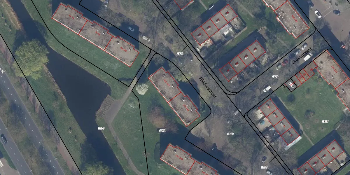 Riddersdreef 125 is gelegen op kadastraal perceel GVH37AW1101. Deze kadastrale aanduiding is uniek en wordt gebruikt door het Kadaster om eigendomsrechten en andere zakelijke rechten vast te leggen. Het perceel maakt onderdeel uit van de kadastrale gemeente 's-Gravenhage.