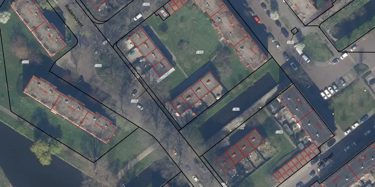 Riddersdreef 46 is gelegen op kadastraal perceel GVH37AW1335. Deze kadastrale aanduiding is uniek en wordt gebruikt door het Kadaster om eigendomsrechten en andere zakelijke rechten vast te leggen. Het perceel maakt onderdeel uit van de kadastrale gemeente 's-Gravenhage.