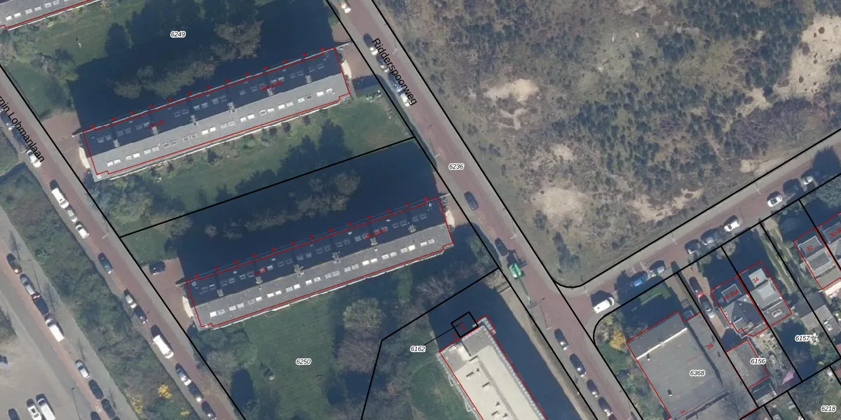 Ridderspoorweg 192 is gelegen op kadastraal perceel LDN03I6250. Deze kadastrale aanduiding is uniek en wordt gebruikt door het Kadaster om eigendomsrechten en andere zakelijke rechten vast te leggen. Het perceel maakt onderdeel uit van de kadastrale gemeente Loosduinen.