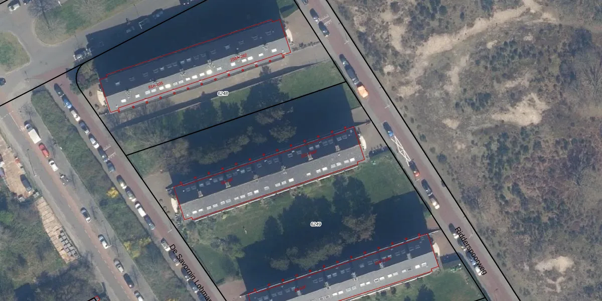 Het perceel waarop Ridderspoorweg 250 staat heeft een oppervlakte van 6320 m². Dit is een zeer groot perceel. De perceeloppervlakte wordt geregistreerd door het Kadaster. Gedetailleerde informatie over de maten van dit perceel kunt u vinden in het rapport Kadastrale kaart met maatvoering van Ridderspoorweg 250.