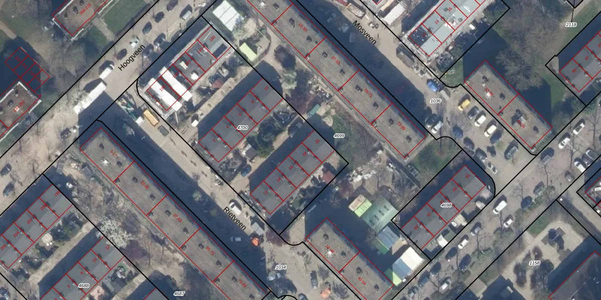 Rietveen 18 is gelegen op kadastraal perceel GVH37AW4700. Deze kadastrale aanduiding is uniek en wordt gebruikt door het Kadaster om eigendomsrechten en andere zakelijke rechten vast te leggen. Het perceel maakt onderdeel uit van de kadastrale gemeente 's-Gravenhage.