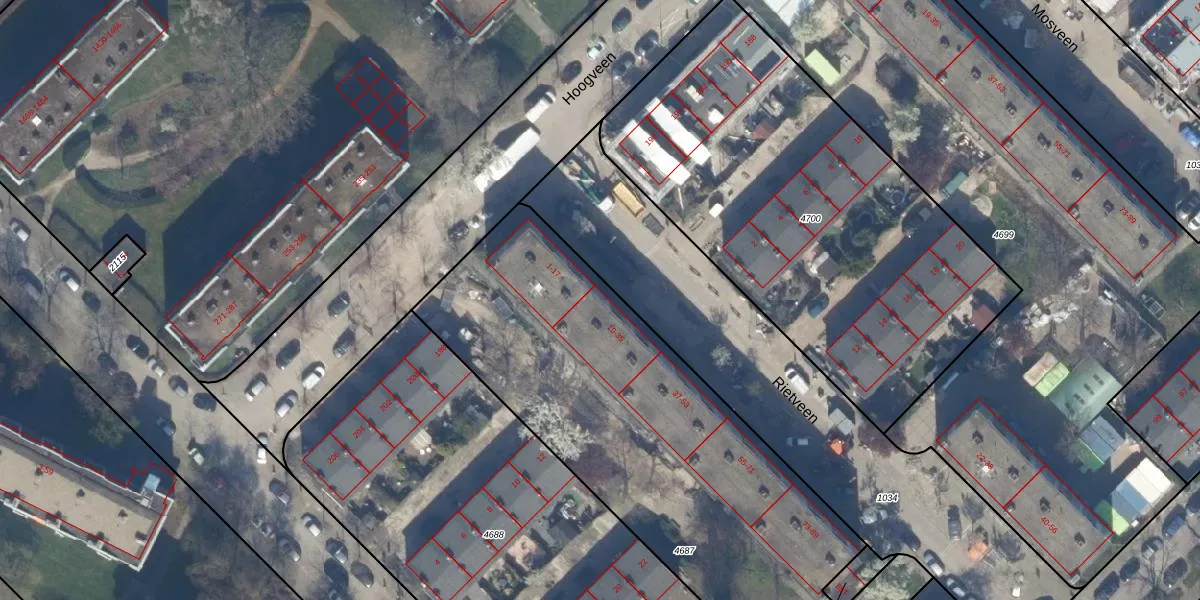 Rietveen 23 is gelegen op kadastraal perceel GVH37AW4687. Deze kadastrale aanduiding is uniek en wordt gebruikt door het Kadaster om eigendomsrechten en andere zakelijke rechten vast te leggen. Het perceel maakt onderdeel uit van de kadastrale gemeente 's-Gravenhage.