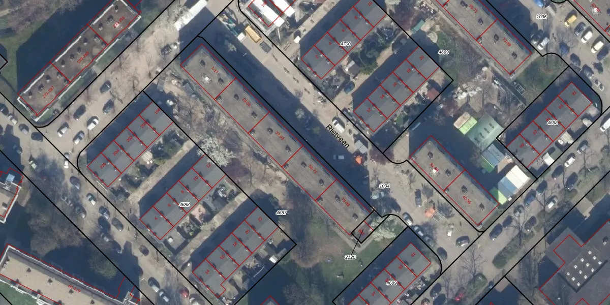 Rietveen 59 is gelegen op kadastraal perceel GVH37AW4687. Deze kadastrale aanduiding is uniek en wordt gebruikt door het Kadaster om eigendomsrechten en andere zakelijke rechten vast te leggen. Het perceel maakt onderdeel uit van de kadastrale gemeente 's-Gravenhage.