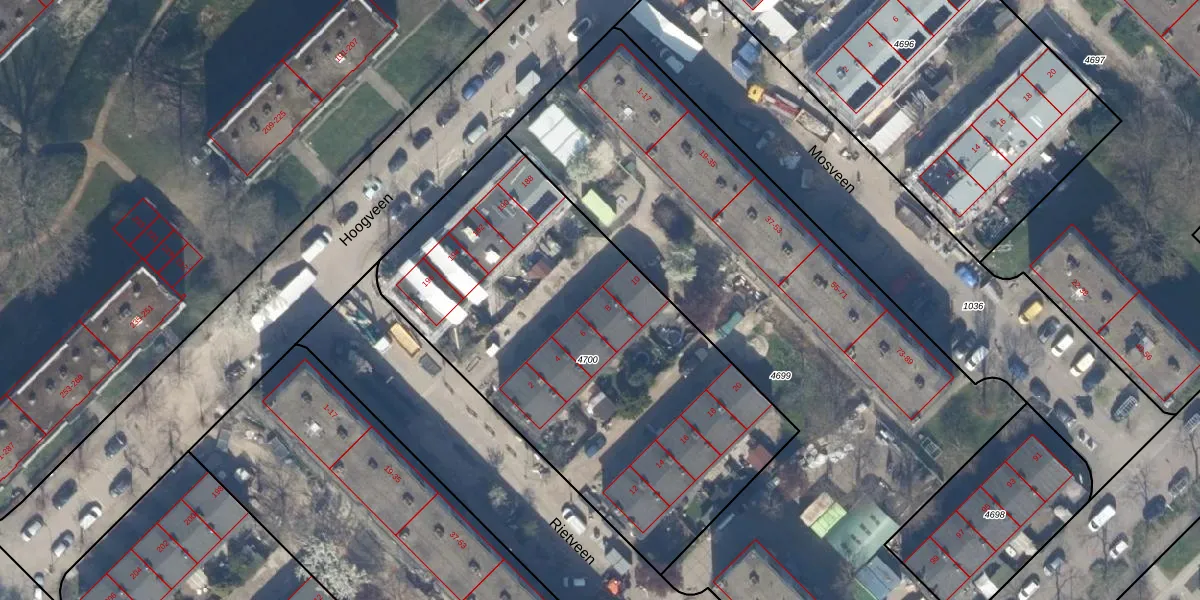 Rietveen 8 is gelegen op kadastraal perceel GVH37AW4700. Deze kadastrale aanduiding is uniek en wordt gebruikt door het Kadaster om eigendomsrechten en andere zakelijke rechten vast te leggen. Het perceel maakt onderdeel uit van de kadastrale gemeente 's-Gravenhage.