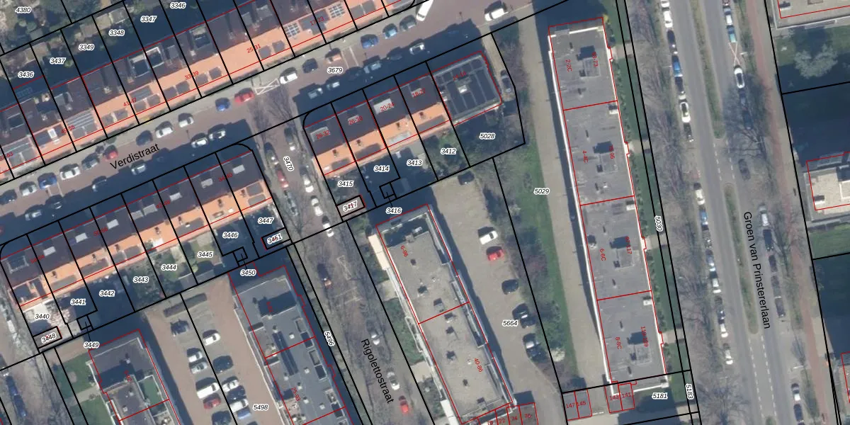 Rigolettostraat 96 is gelegen op kadastraal perceel LDN03H5664. Deze kadastrale aanduiding is uniek en wordt gebruikt door het Kadaster om eigendomsrechten en andere zakelijke rechten vast te leggen. Het perceel maakt onderdeel uit van de kadastrale gemeente Loosduinen.