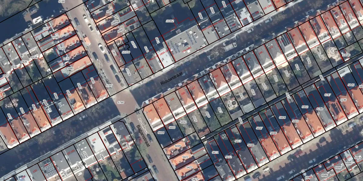 Het perceel waarop Riouwstraat 155 staat heeft een oppervlakte van 206 m². Dit is een middelgroot perceel. De perceeloppervlakte wordt geregistreerd door het Kadaster. Gedetailleerde informatie over de maten van dit perceel kunt u vinden in het rapport Kadastrale kaart met maatvoering van Riouwstraat 155.