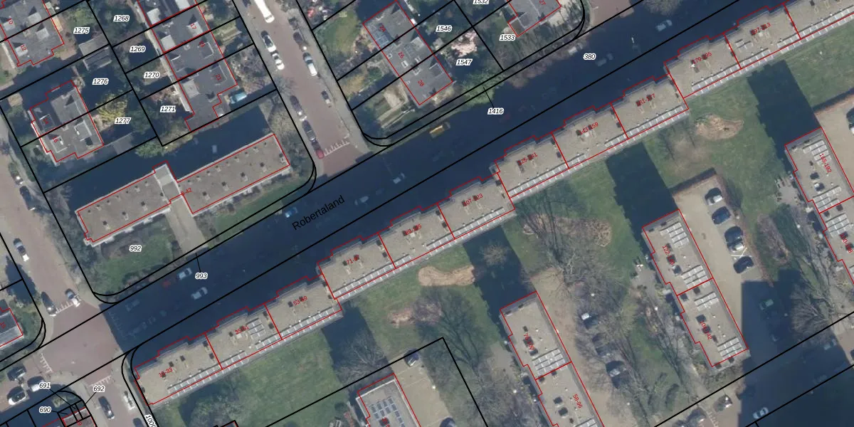 Robertaland 103 is gelegen op kadastraal perceel GVH34AS1013. Deze kadastrale aanduiding is uniek en wordt gebruikt door het Kadaster om eigendomsrechten en andere zakelijke rechten vast te leggen. Het perceel maakt onderdeel uit van de kadastrale gemeente 's-Gravenhage.