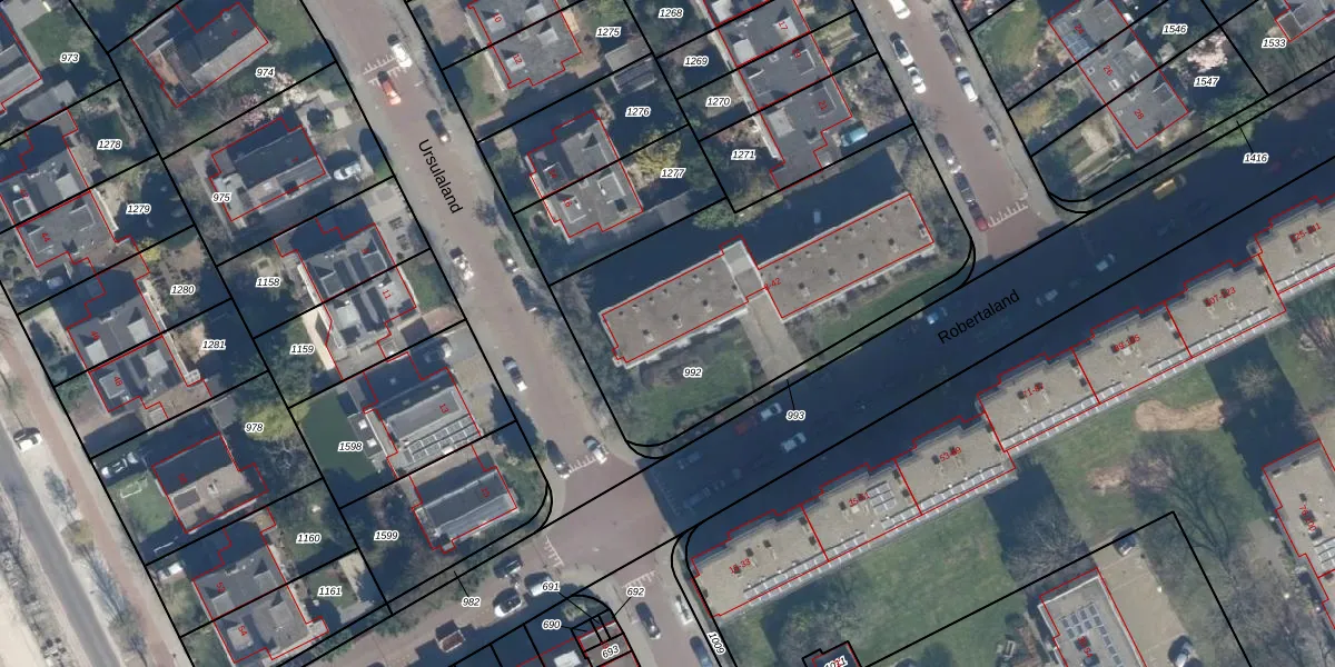 Het perceel waarop Robertaland 22 staat heeft een oppervlakte van 1542 m². Dit is een zeer groot perceel. De perceeloppervlakte wordt geregistreerd door het Kadaster. Gedetailleerde informatie over de maten van dit perceel kunt u vinden in het rapport Kadastrale kaart met maatvoering van Robertaland 22.
