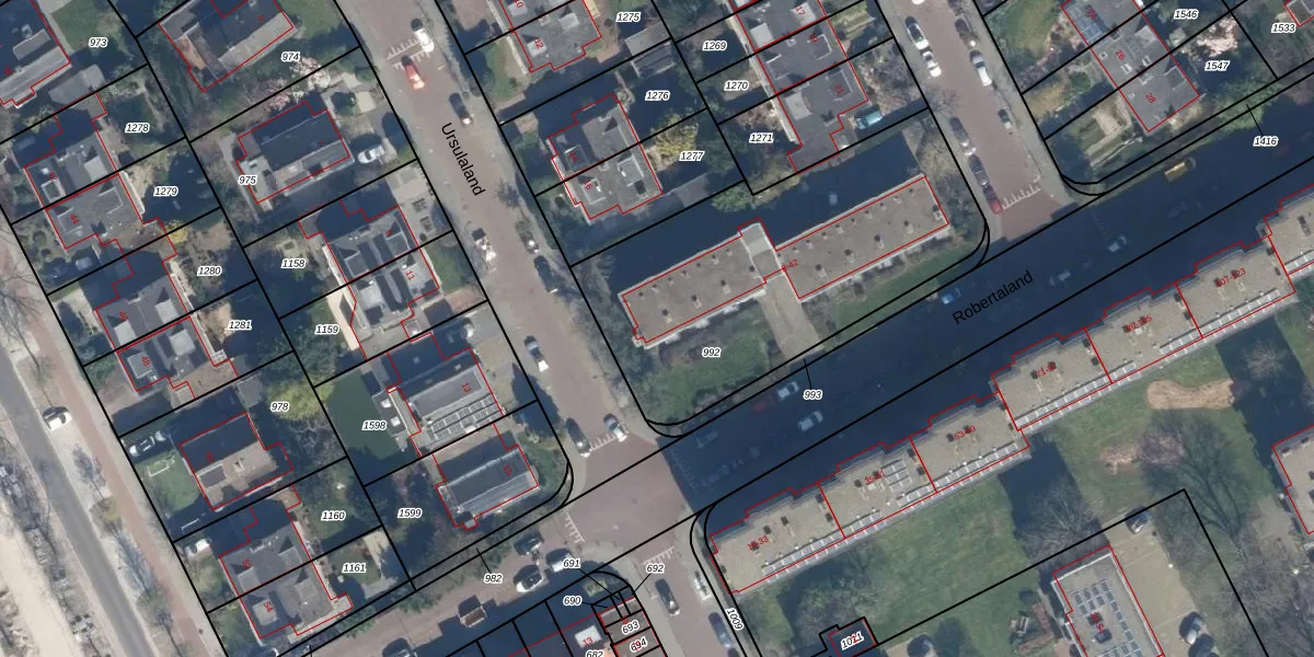 Het perceel waarop Robertaland 24 staat heeft een oppervlakte van 1542 m². Dit is een zeer groot perceel. De perceeloppervlakte wordt geregistreerd door het Kadaster. Gedetailleerde informatie over de maten van dit perceel kunt u vinden in het rapport Kadastrale kaart met maatvoering van Robertaland 24.