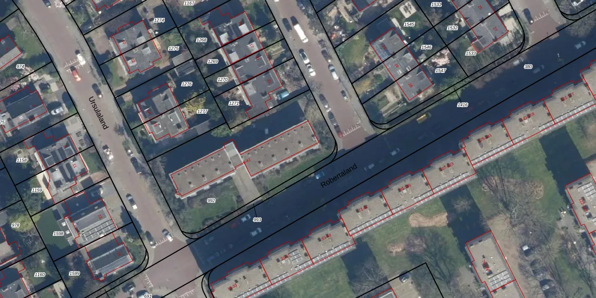 Het perceel waarop Robertaland 32 staat heeft een oppervlakte van 1542 m². Dit is een zeer groot perceel. De perceeloppervlakte wordt geregistreerd door het Kadaster. Gedetailleerde informatie over de maten van dit perceel kunt u vinden in het rapport Kadastrale kaart met maatvoering van Robertaland 32.