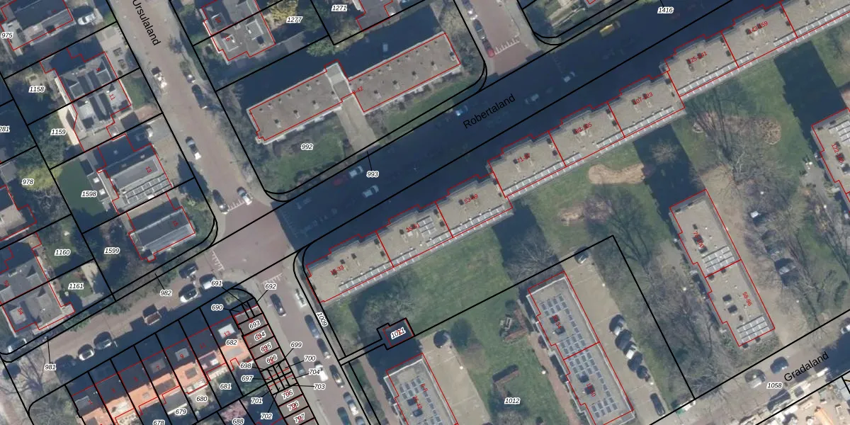 Robertaland 45 is gelegen op kadastraal perceel GVH34AS1013. Deze kadastrale aanduiding is uniek en wordt gebruikt door het Kadaster om eigendomsrechten en andere zakelijke rechten vast te leggen. Het perceel maakt onderdeel uit van de kadastrale gemeente 's-Gravenhage.