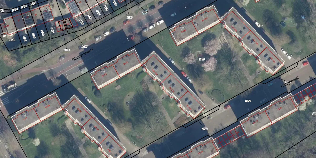 Het perceel waarop Robijnhorst 110 staat heeft een oppervlakte van 1,7 ha. Dit is een zeer groot perceel. De perceeloppervlakte wordt geregistreerd door het Kadaster. Gedetailleerde informatie over de maten van dit perceel kunt u vinden in het rapport Kadastrale kaart met maatvoering van Robijnhorst 110.