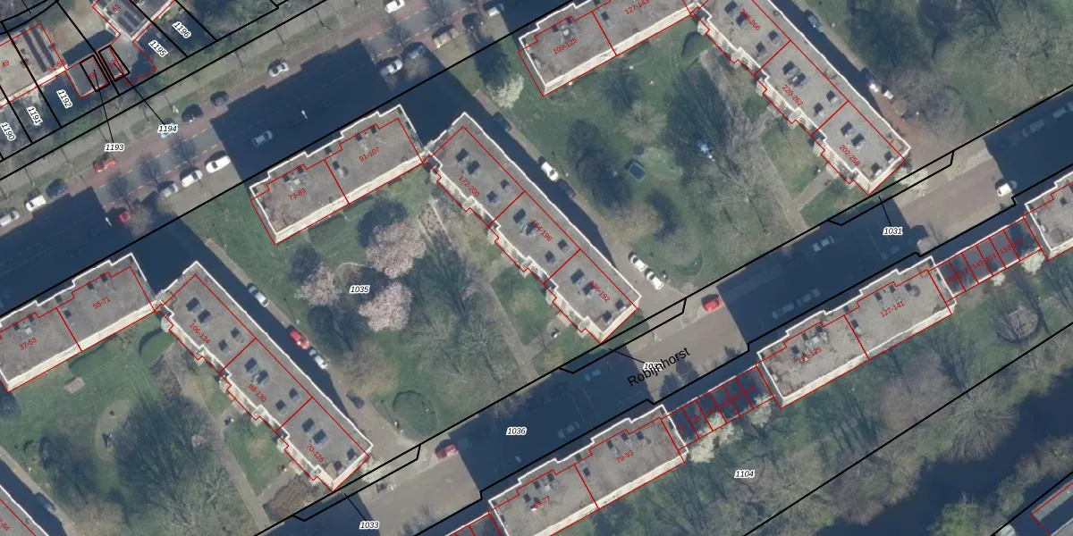 Het perceel waarop Robijnhorst 158 staat heeft een oppervlakte van 1,7 ha. Dit is een zeer groot perceel. De perceeloppervlakte wordt geregistreerd door het Kadaster. Gedetailleerde informatie over de maten van dit perceel kunt u vinden in het rapport Kadastrale kaart met maatvoering van Robijnhorst 158.