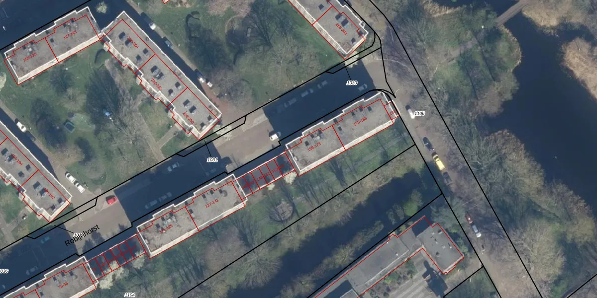 Het perceel waarop Robijnhorst 165 staat heeft een oppervlakte van 6423 m². Dit is een zeer groot perceel. De perceeloppervlakte wordt geregistreerd door het Kadaster. Gedetailleerde informatie over de maten van dit perceel kunt u vinden in het rapport Kadastrale kaart met maatvoering van Robijnhorst 165.
