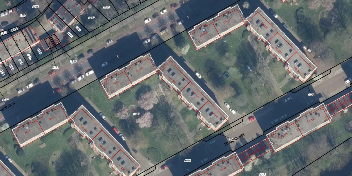 Het perceel waarop Robijnhorst 178 staat heeft een oppervlakte van 1,7 ha. Dit is een zeer groot perceel. De perceeloppervlakte wordt geregistreerd door het Kadaster. Gedetailleerde informatie over de maten van dit perceel kunt u vinden in het rapport Kadastrale kaart met maatvoering van Robijnhorst 178.