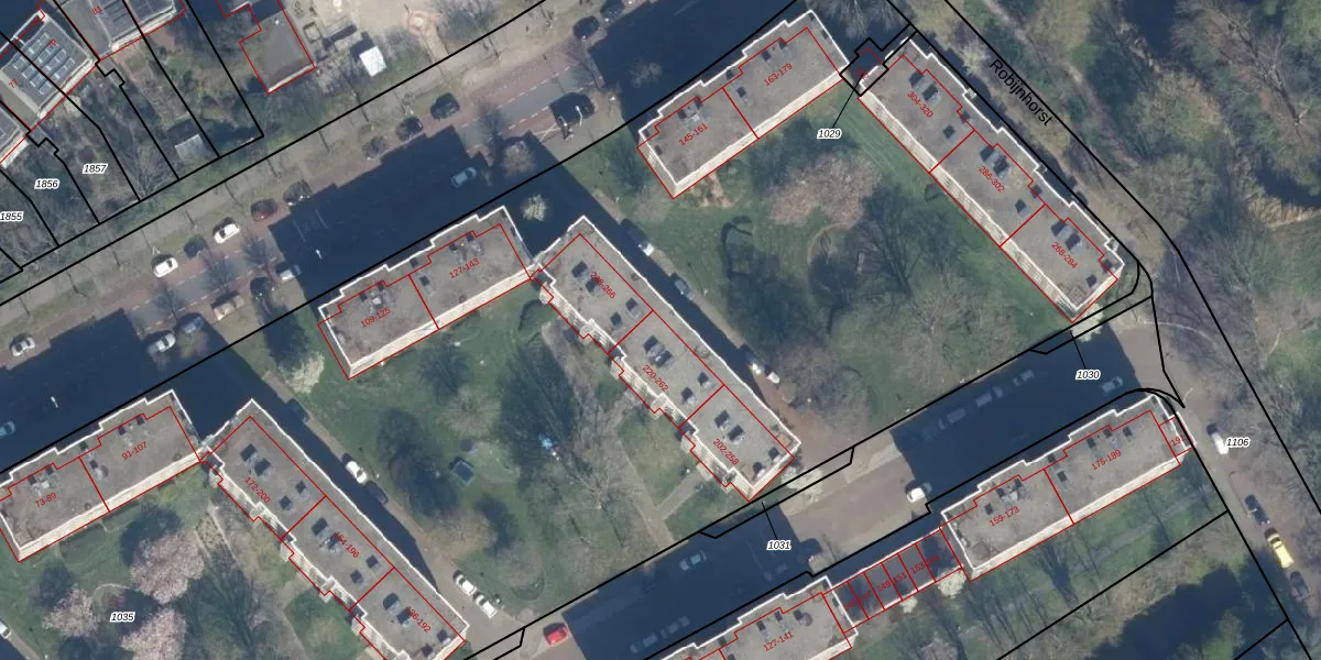 Het perceel waarop Robijnhorst 262 staat heeft een oppervlakte van 1,7 ha. Dit is een zeer groot perceel. De perceeloppervlakte wordt geregistreerd door het Kadaster. Gedetailleerde informatie over de maten van dit perceel kunt u vinden in het rapport Kadastrale kaart met maatvoering van Robijnhorst 262.
