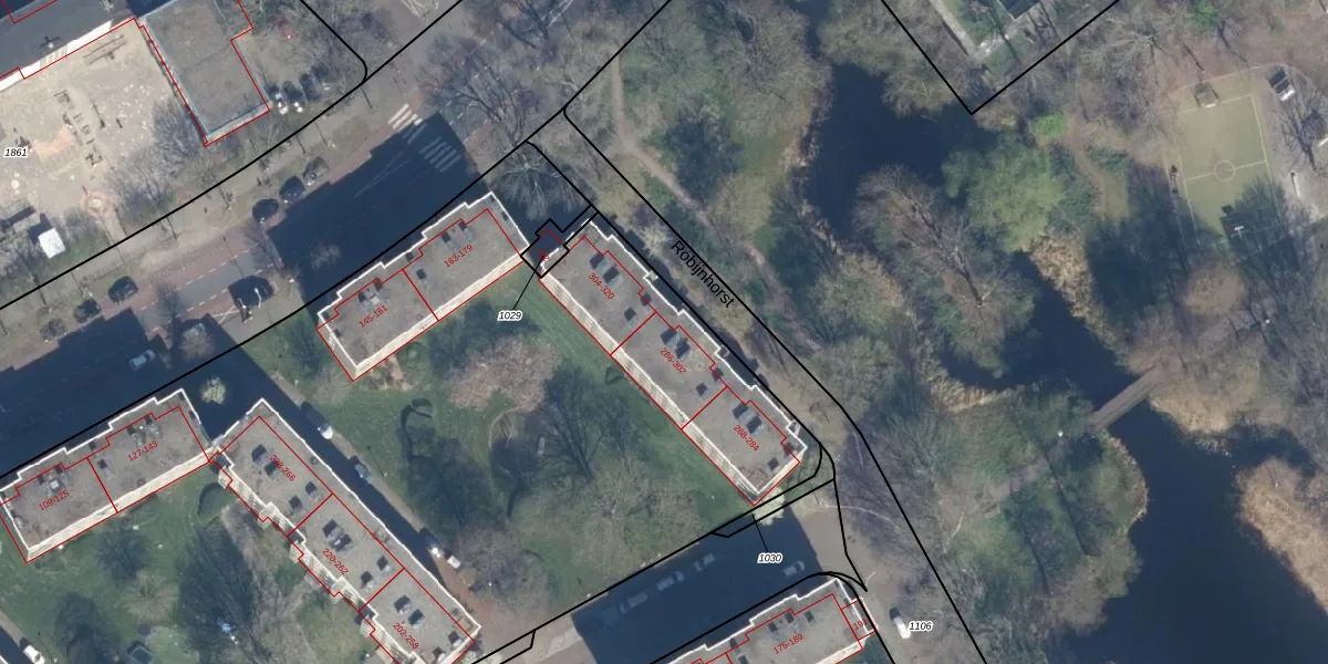 Het perceel waarop Robijnhorst 298 staat heeft een oppervlakte van 1,7 ha. Dit is een zeer groot perceel. De perceeloppervlakte wordt geregistreerd door het Kadaster. Gedetailleerde informatie over de maten van dit perceel kunt u vinden in het rapport Kadastrale kaart met maatvoering van Robijnhorst 298.