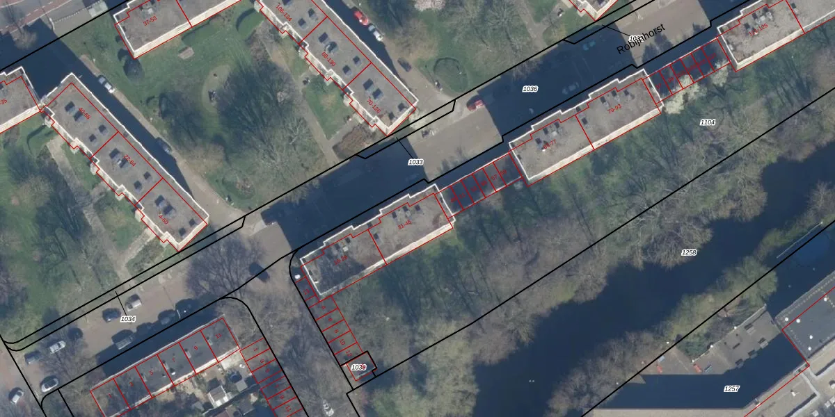 Robijnhorst 45 is gelegen op kadastraal perceel GVH34AS1104. Deze kadastrale aanduiding is uniek en wordt gebruikt door het Kadaster om eigendomsrechten en andere zakelijke rechten vast te leggen. Het perceel maakt onderdeel uit van de kadastrale gemeente 's-Gravenhage.