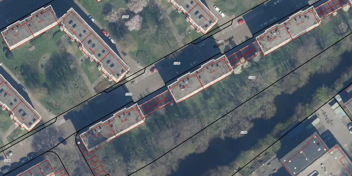 Het perceel waarop Robijnhorst 63 staat heeft een oppervlakte van 6423 m². Dit is een zeer groot perceel. De perceeloppervlakte wordt geregistreerd door het Kadaster. Gedetailleerde informatie over de maten van dit perceel kunt u vinden in het rapport Kadastrale kaart met maatvoering van Robijnhorst 63.