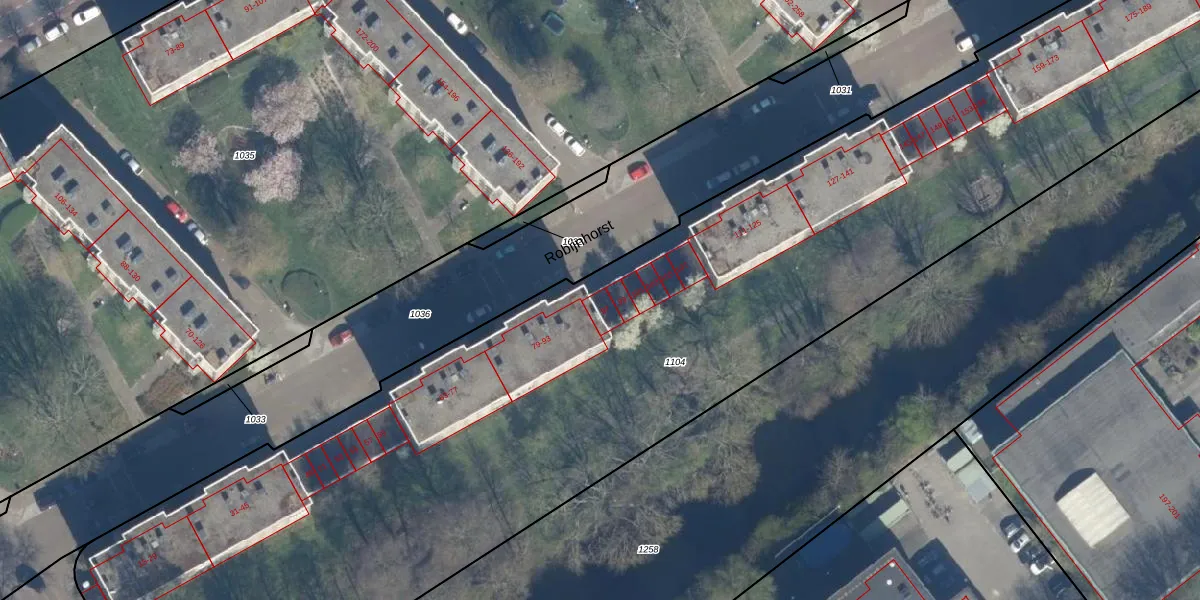 Het perceel waarop Robijnhorst 97 staat heeft een oppervlakte van 6423 m². Dit is een zeer groot perceel. De perceeloppervlakte wordt geregistreerd door het Kadaster. Gedetailleerde informatie over de maten van dit perceel kunt u vinden in het rapport Kadastrale kaart met maatvoering van Robijnhorst 97.
