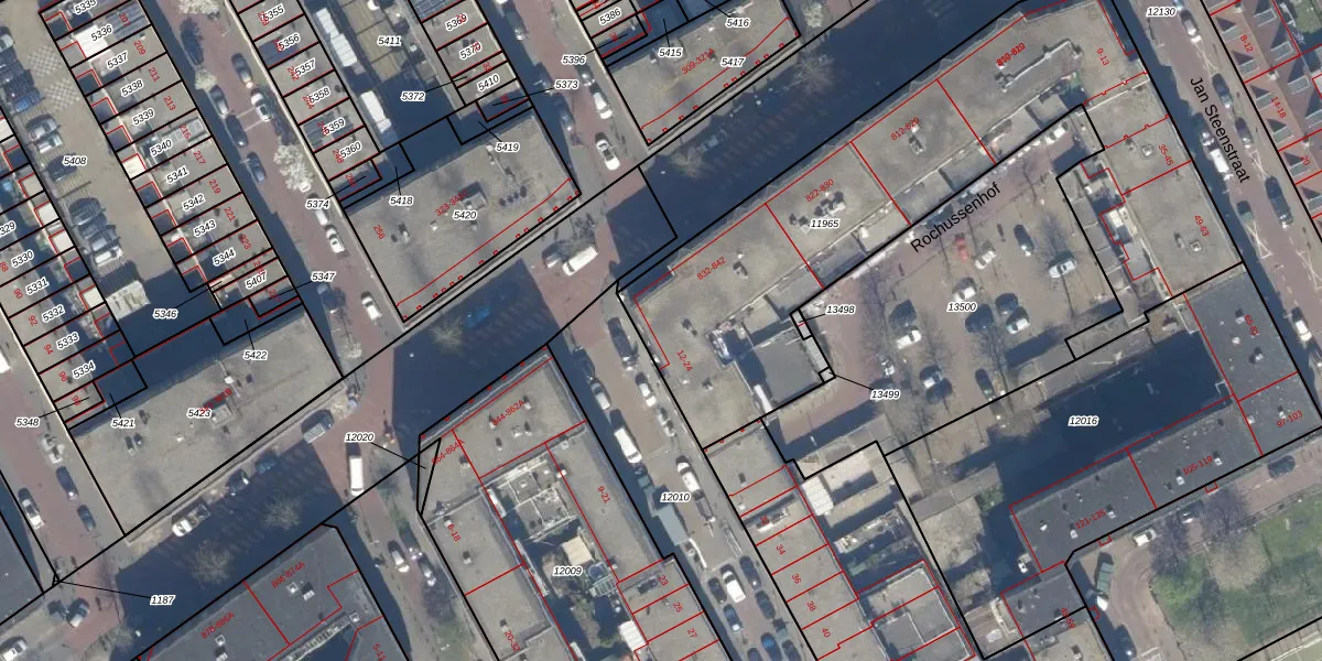 Het perceel waarop Rochussenstraat 16 staat heeft een oppervlakte van 2415 m². Dit is een zeer groot perceel. De perceeloppervlakte wordt geregistreerd door het Kadaster. Gedetailleerde informatie over de maten van dit perceel kunt u vinden in het rapport Kadastrale kaart met maatvoering van Rochussenstraat 16.