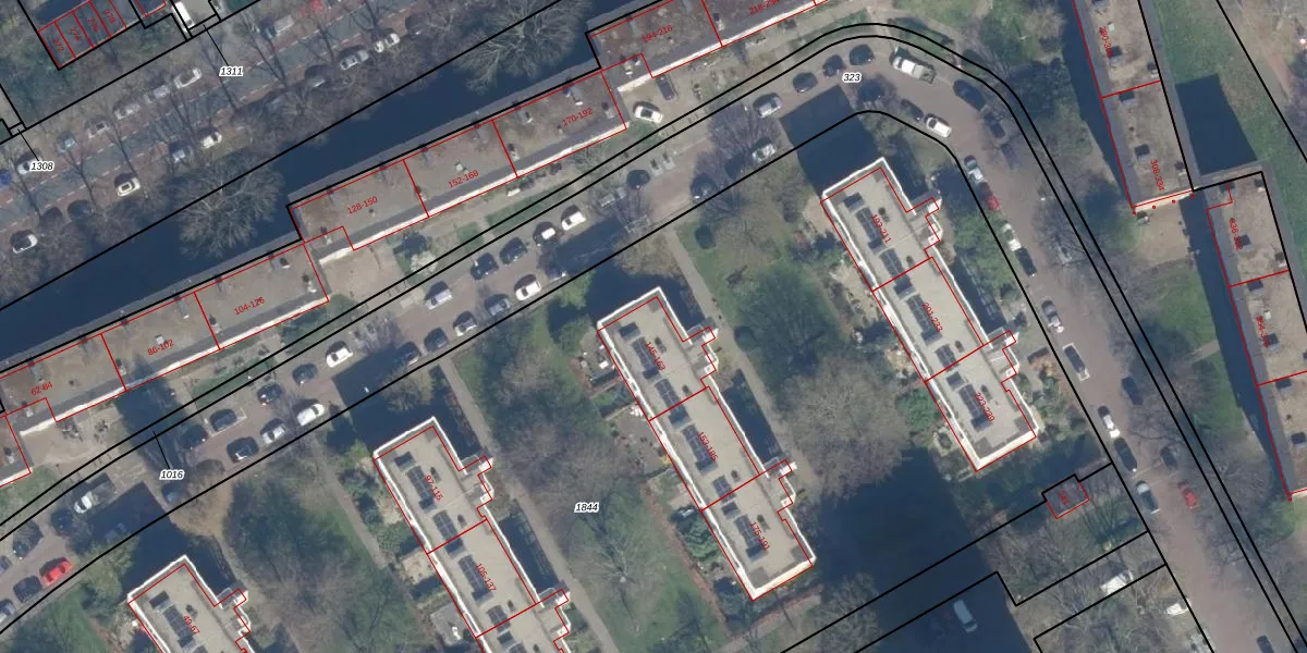 Het perceel waarop het adres ligt is GVH34-AS-1844. De afkorting 'GVH34' staat voor kadastrale gemeente 's-Gravenhage. De oppervlakte van het perceel is 1,2 ha. Dat is groter dan gemiddeld in 's-Gravenhage, waar de gemiddelde perceeloppervlakte op 1318,64 m² ligt. De grootste perceeloppervlakte in de kadastrale gemeente is 11,0 ha. De kleinste oppervlakte bedraagt 0 m². Op het perceel zijn 110 adressen aanwezig. De laatste wijziging in het de Basisregistratie Kadaster (BRK) was op 03-11-2003.
