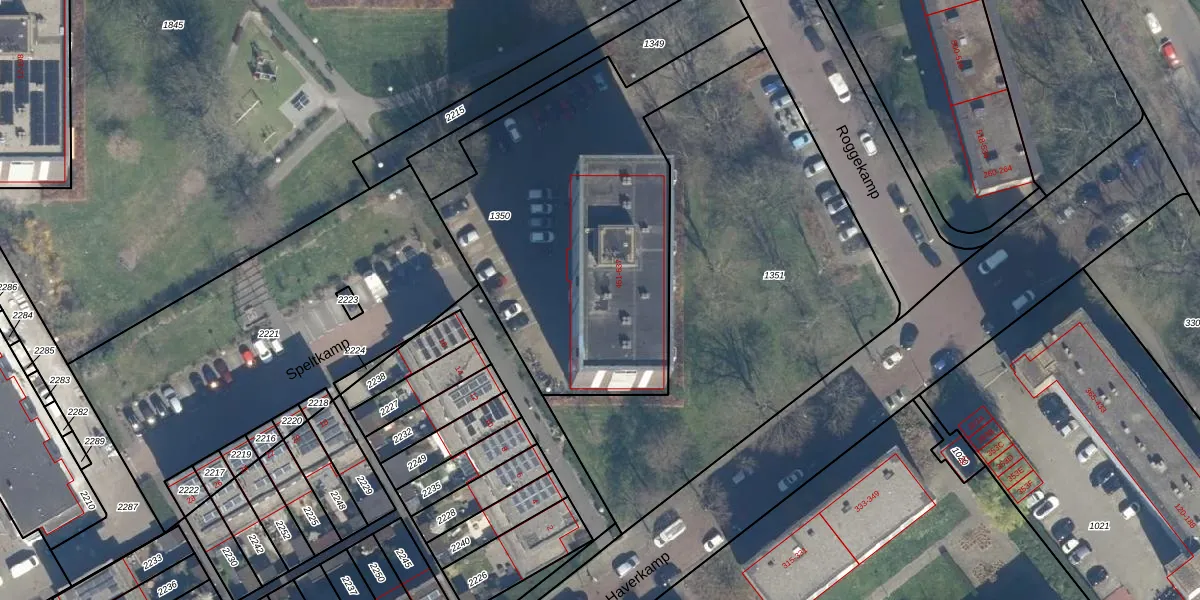 Het perceel waarop Roggekamp 485 staat heeft een oppervlakte van 1714 m². Dit is een zeer groot perceel. De perceeloppervlakte wordt geregistreerd door het Kadaster. Gedetailleerde informatie over de maten van dit perceel kunt u vinden in het rapport Kadastrale kaart met maatvoering van Roggekamp 485.