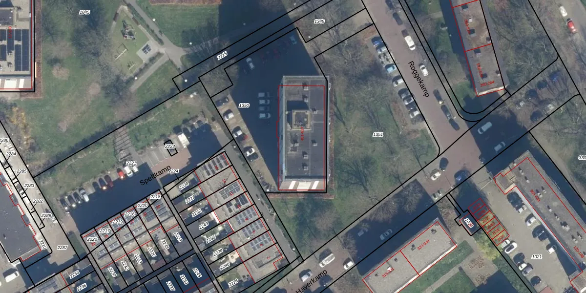Het perceel waarop Roggekamp 499 staat heeft een oppervlakte van 1714 m². Dit is een zeer groot perceel. De perceeloppervlakte wordt geregistreerd door het Kadaster. Gedetailleerde informatie over de maten van dit perceel kunt u vinden in het rapport Kadastrale kaart met maatvoering van Roggekamp 499.