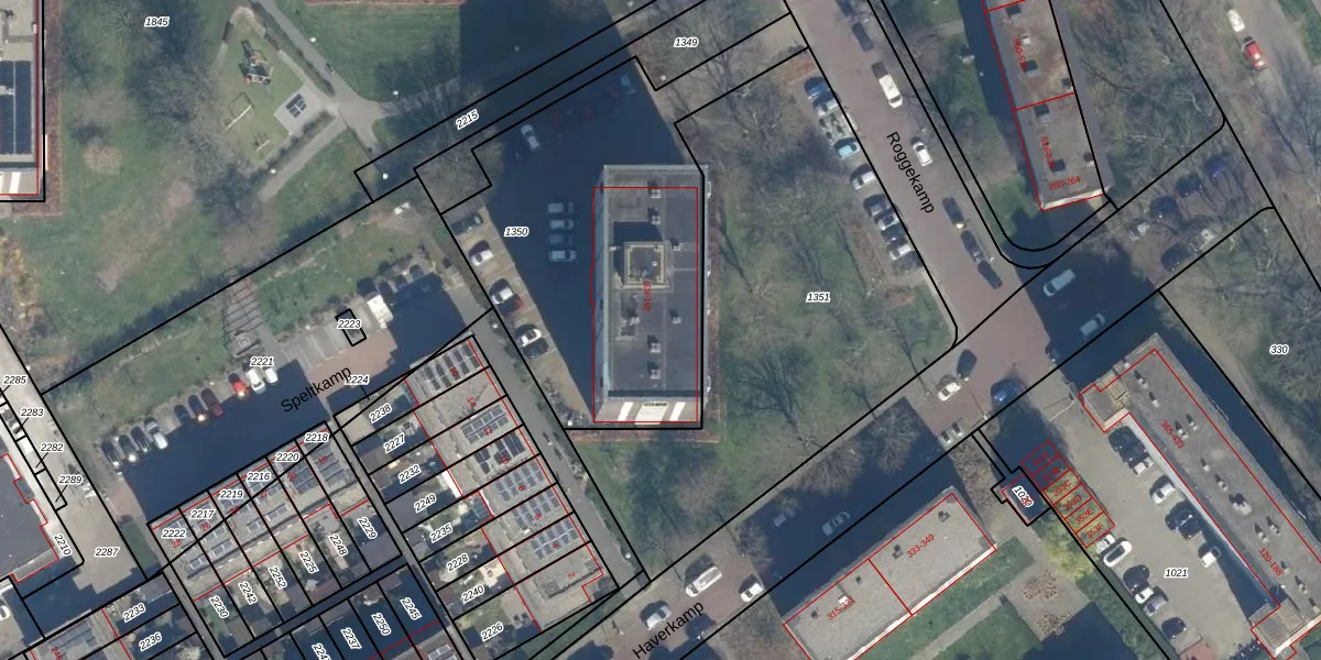 Het perceel waarop Roggekamp 589 staat heeft een oppervlakte van 1714 m². Dit is een zeer groot perceel. De perceeloppervlakte wordt geregistreerd door het Kadaster. Gedetailleerde informatie over de maten van dit perceel kunt u vinden in het rapport Kadastrale kaart met maatvoering van Roggekamp 589.