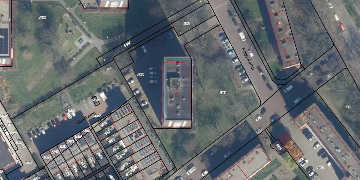 Het perceel waarop Roggekamp 605 staat heeft een oppervlakte van 1714 m². Dit is een zeer groot perceel. De perceeloppervlakte wordt geregistreerd door het Kadaster. Gedetailleerde informatie over de maten van dit perceel kunt u vinden in het rapport Kadastrale kaart met maatvoering van Roggekamp 605.