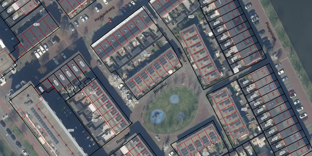 Romehof 16 is gelegen op kadastraal perceel GVH39AY2887. Deze kadastrale aanduiding is uniek en wordt gebruikt door het Kadaster om eigendomsrechten en andere zakelijke rechten vast te leggen. Het perceel maakt onderdeel uit van de kadastrale gemeente 's-Gravenhage.